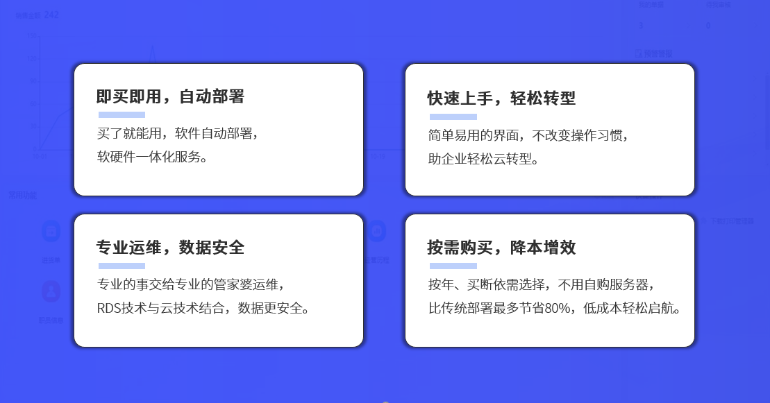管家婆云輝煌采用云服務(wù)技術(shù),為客戶提供了一個(gè)集進(jìn)、銷、存、財(cái)務(wù)業(yè)務(wù)為一體的企業(yè)管理平臺(tái),實(shí)現(xiàn)了企業(yè)物流、錢流、信息流的實(shí)時(shí)并行,針對(duì)關(guān)鍵業(yè)務(wù)指標(biāo)進(jìn)行多角度分析,為企業(yè)經(jīng)營(yíng)者決策提供數(shù)據(jù)依據(jù)。